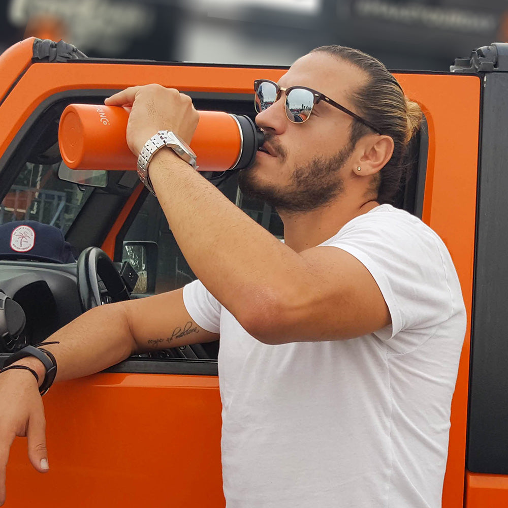 PREMIUM QUALITY: The Drinco water bottle is constructed with rust-resistant (18/8) food-grade stainless steel double walled body. The powder coating paint treatment makes the insulated water bottle virtually indestructible, scratch resistant and restricts temperature transfer.