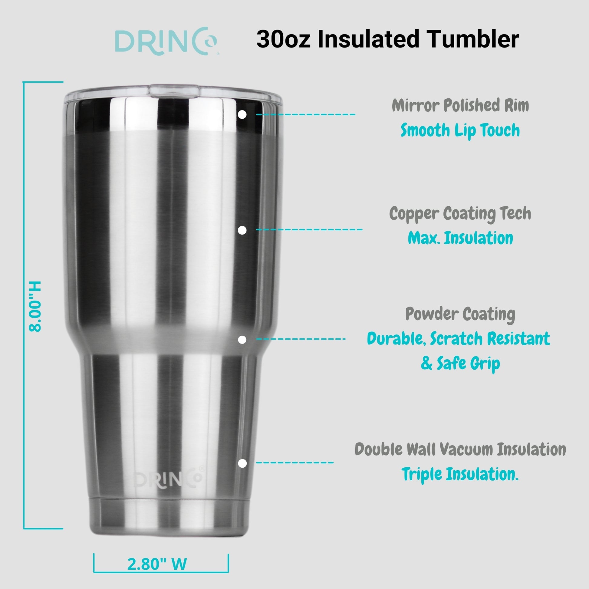 - PREMIUM QUALITY STAINLESS STEEL: The Drinco travel tumbler with straw has been constructed with a sturdy stainless steel (18/8) body a material lauded for its durability. Effective insulation with a see-through removable cap to keep your drinks hot and cold for hours.